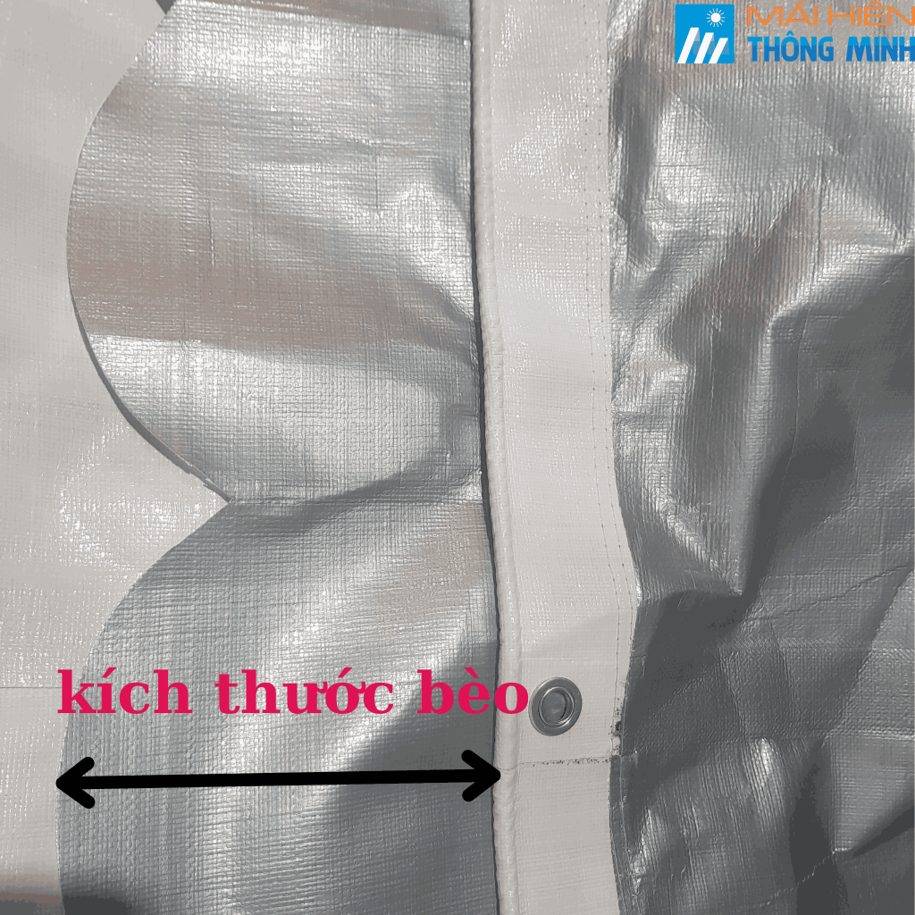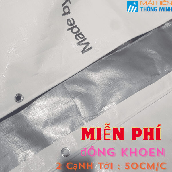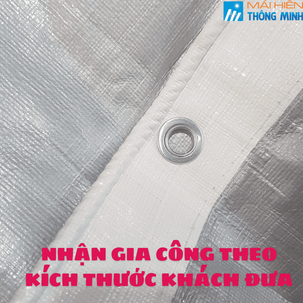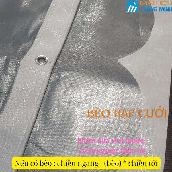 Mỗi tấm bạt được may viền xung quanh 4 bên , 4 gốc đóng khoen chịu lực để khách dễ buộc dây