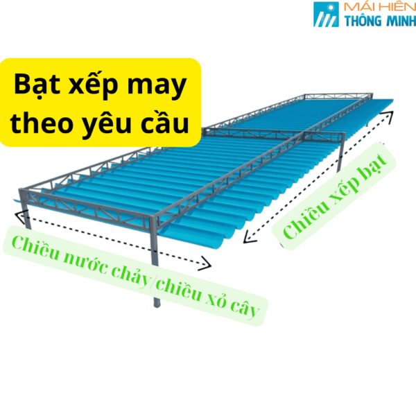 Sản phẩm bạt xếp được may theo kích thước khách hàng yêu cầu, thành phẩm gửi đến khách hàng đã có độ võng bạt, dây định vị